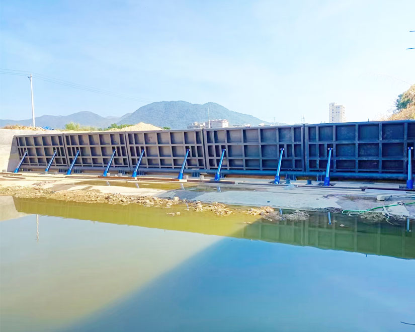 液压翻板闸门又称为液压坝是一种采用液压系统控制原理和自卸汽车力学原理,结合支墩坝水工结构型式的新型活动坝,具备挡水和泄水双重功能??梢宰远购?在出现山洪暴发等*状况下能够及时泄洪,对下游不造成过大冲击。